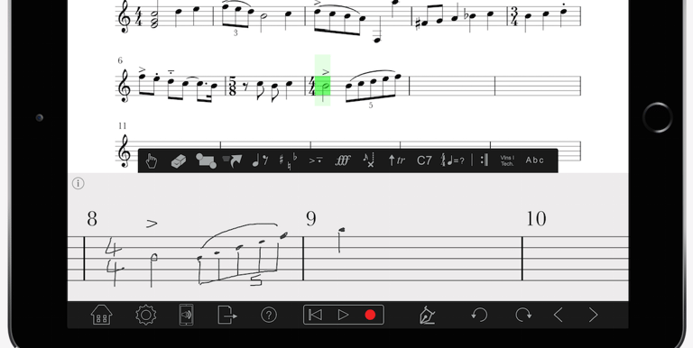 Usamos Notability para escribir, dibujar, resaltar ideas y trabajar directamente sobre partituras. Todo en tiempo real con trazos de colores y pinceles variados que brindan una explicación clara, visual y personalizada.